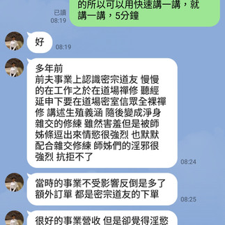 4. 法鼓山小娟師姐,剛說完,可以辦楞嚴法會,之後回覆訊息,楞嚴法會又不了了之,反而推薦藏傳寺廟,高雄古嚴寺,顯然當下又不是自己的意識了。