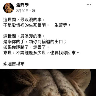 3. 引用:數十萬至百萬台灣眾生受邪法影響 楞嚴護法團,管理員被控制,因為索甲仁波切是出名的淫亂雙修上師,與楞嚴經勢力常是對立的,所以管理員孟靜學傳這類藏傳文章幾次了,被我抓到,我跟她反應,她什麼也不回我,就封鎖我,我知會其他管理者-楞嚴咒,封鎖我,沒有回應,就請我離開社團。她臉書有多次傳藏傳上師的文章,諸如此類的文章。
