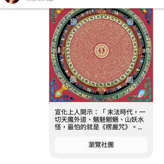 藏傳刻意選定資糧豐厚的佔據淨空法師的法子,用來染白自己的業力,染黑管理者業力帶回給自己宗門和法脈,各社團至少5位管理者,都是數年累積,有的一人粉絲多達1.5萬,請各派有自己管理的社群與群組人員留意,或請法師揩導,最好有修過楞嚴咒2萬遍的人,再管社群會較安定一些。也請各派儘快培育楞嚴法脈的人才。